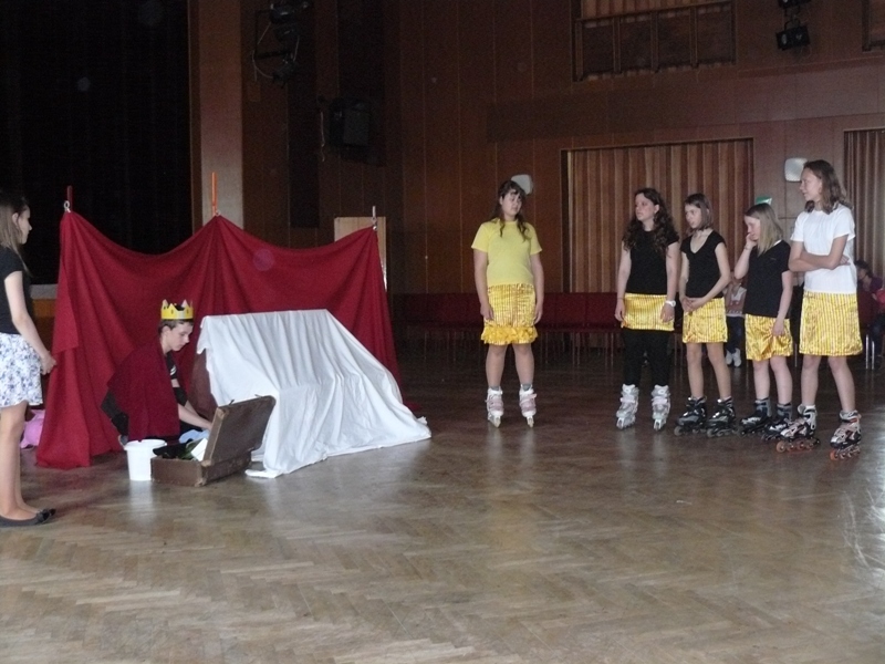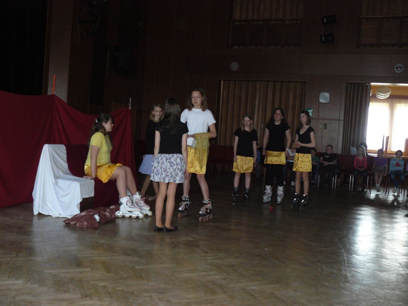 Na pohádku Pasáček vepřů nás pozvaly paní učitelka Jitka Pluháčková s dětmi z literárně dramatického oboru. V úvodu paní učitelka děti seznámila se spisovatelem H. Ch. Andersenem a jeho dalšími pohádkami. Moderní pojetí pohádky děti zaujalo, obzvláště pak jízda na kolečkových bruslích královny, princezny a jejích dvorních dam. Děkujeme paní učitelce J. Pluháčkové a dětem za příjemné zpestření odpoledne.