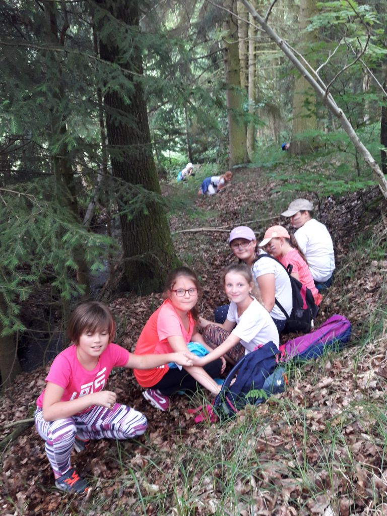 Společně jsme prošli indiánskou stezku, kterou Špioni připravili pro Indiány. Stezka pak končila schovávačkou v lese. U rybníka Vížka jsme si vyzkoušeli svoji tvořivost a fantazii ve tvoření lodiček z přírodních materiálů. Lodičky jsme potom vypustili na vodu a pozorovali jejich plavbu. Po dlouhém pobytu v přírodě jsme si ještě zatančili na naší diskotéce a prožili dobrodružství při noční prohlídce školy. A pak o půlnoci jsme postupně usínali únavou ve svých "pelíšcích". Všichni jsme si tento den, na který jsme se dlouho těšili, opět skvěle užili.