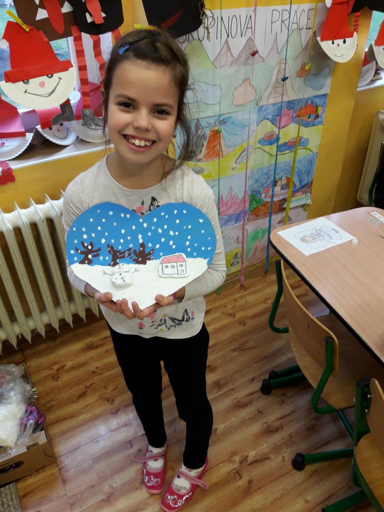 Vyráběli jsme různé ozdoby, dárky a taky jsme si hezky vyzdobili třídu. Samozřejmě, že jsme si našli čas i na hraní her a nakonec se dočkali nadílky, Vánoc a prázdnin. Jenom toho sněhu moc nebylo. Přesto jsme si našeho sněhuláka stihli postavit. Těšíme se, že ještě sníh napadne a vše si pořádně vynahradíme!