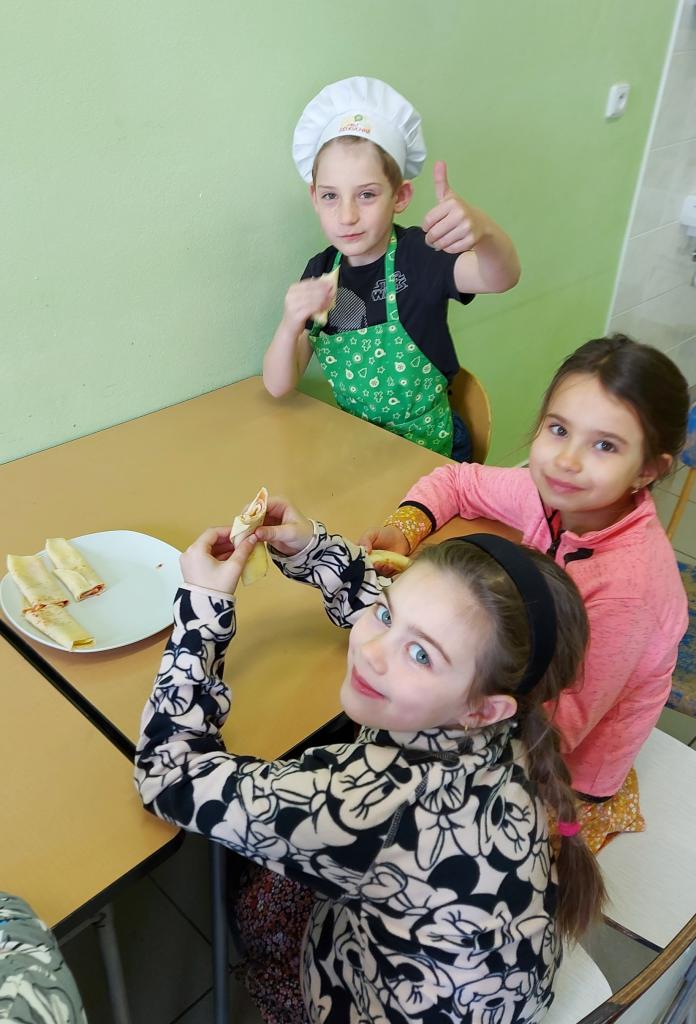 To nejlepší ovšem přišlo až na závěr - děti si mohly ochutnat svoje výtvory. Vaření ve školní kuchyňce děti bavilo a navíc si ještě pochutnaly.