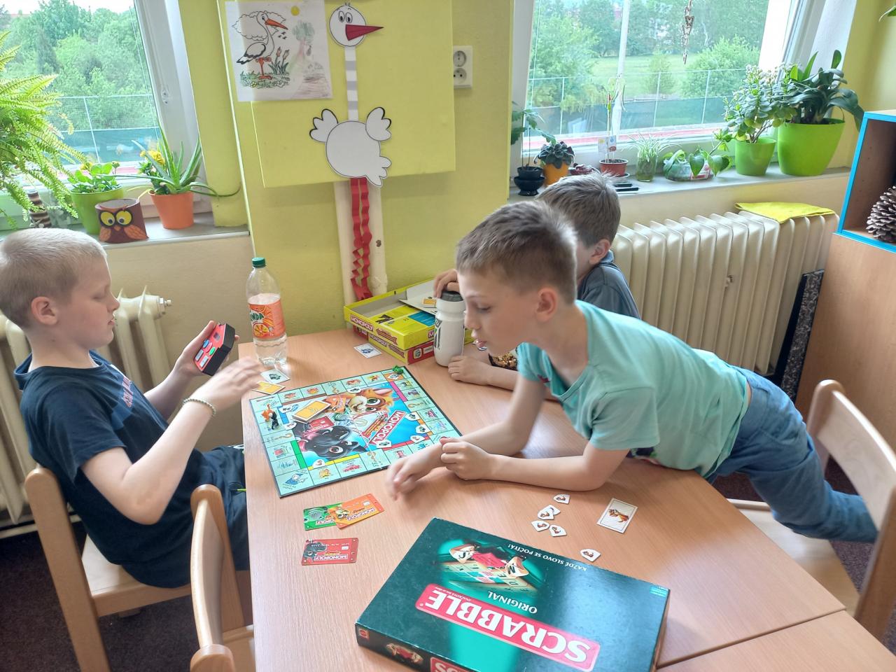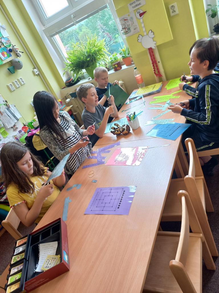 Na přání "hráčů", jak si na deskovkách říkáme, jsme 23. 5. měli dvouhodinovku společných, deskových a karetních her. V poslední čtvrtině času jsme si do vlastního souboru vytvořených her přidali další, tentokrát domino a mlýn.
