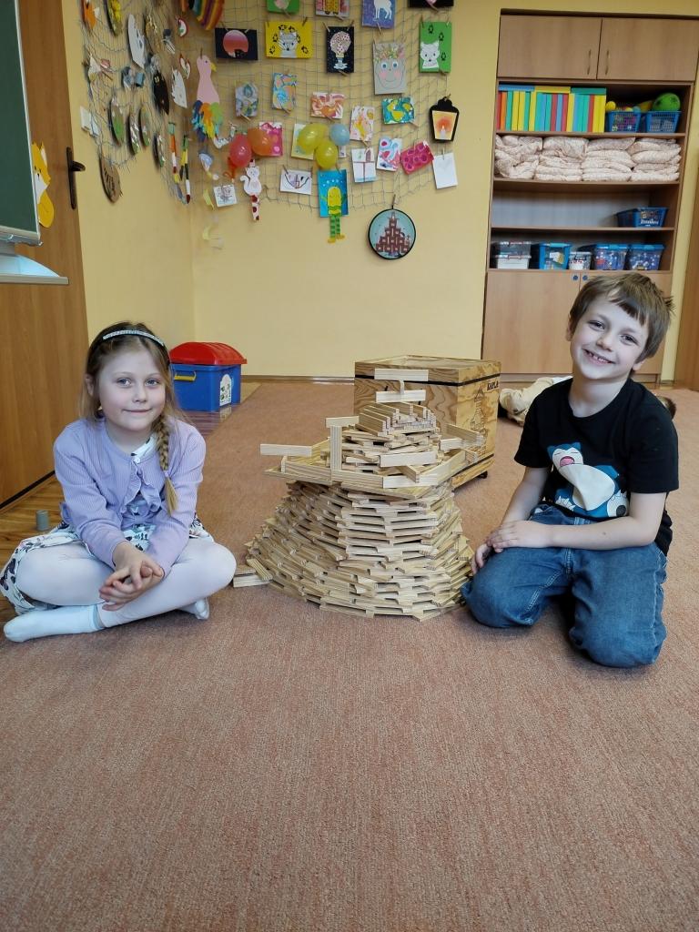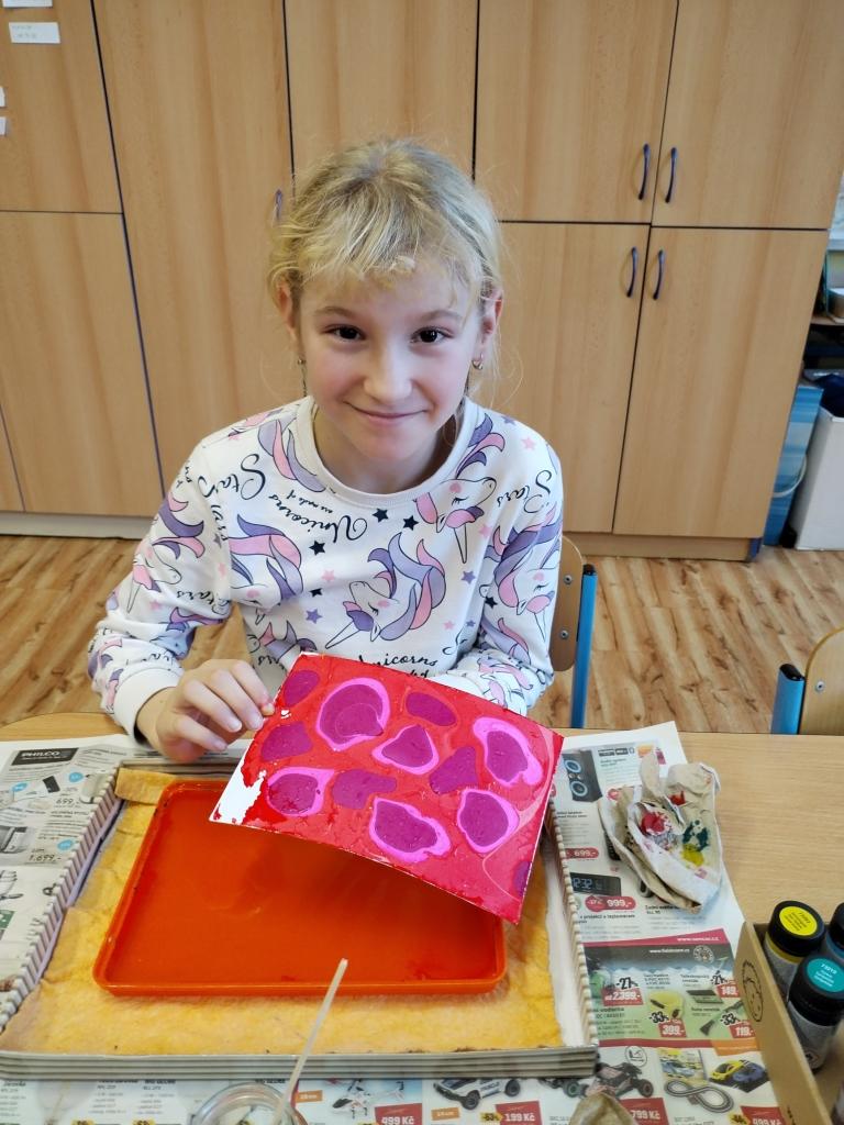 Děti ve školní družině se pravidelně zapojují do různých kreativních činností. Rády vyrábějí a staví z různých stavebnic, což rozvíjí jejich zručnost a představivost. Inspiraci pro malování získaly při návštěvě výstavy žáků naší školy v městské knihovně, kde si prohlédly díla svých spolužáků. Kromě tvoření mají děti i pravidelný kontakt s přírodou. Často chodí ven, kde mají možnost sledovat život v našem městě, pozorovat přírodu a užít si pohyb na čerstvém vzduchu. Součástí programu v družině jsou také pohybové a sportovní aktivity, které zahrnují různé hry a cvičení. Děti se věnují aktivitám, jako jsou běhání, skákání, míčové a společné hry nebo různé soutěže, které podporují jejich fyzickou zdatnost a týmovou spolupráci.