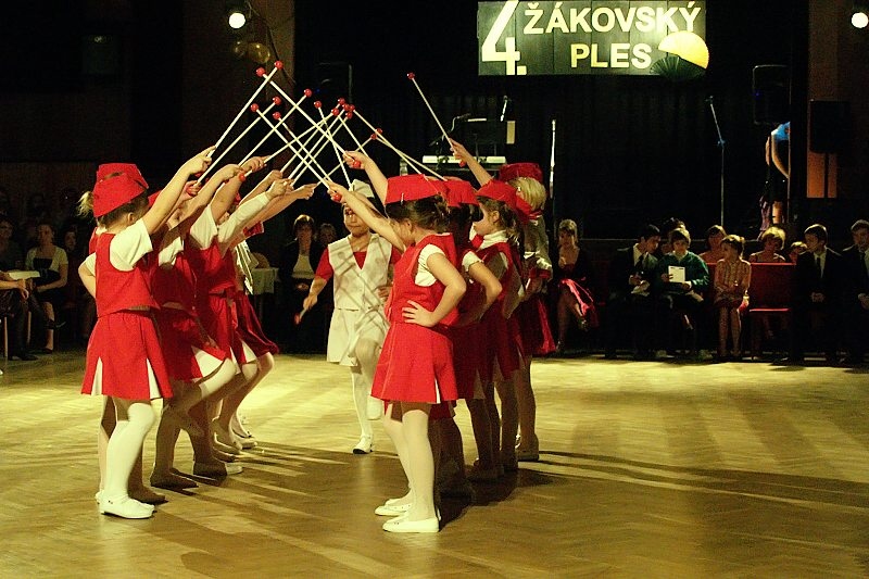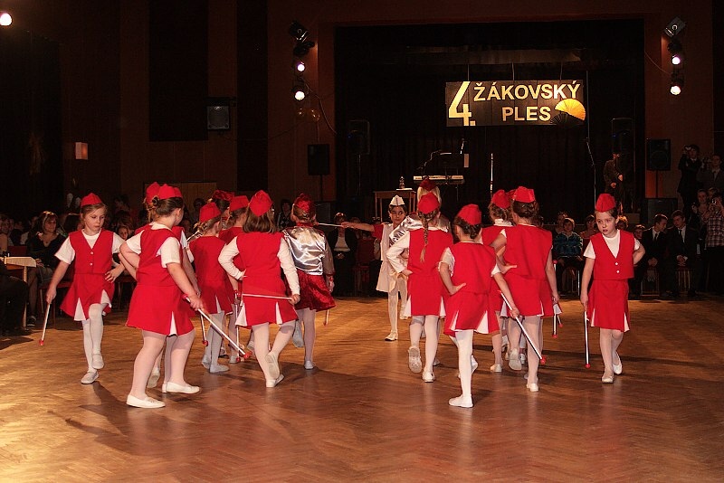 Dne 25. února se konal 4. žákovský ples, opět pod taktovkou devátých tříd. Ples byl laděn do zlaté, černé a bílé barvy. Na stolech se pyšnili pávi, na podiu byl velký a nádherný nápis a všude vějíře a balonky. Příprava byla velmi náročná. Myslíme, že se nám ples moc povedl a měli jsme dobré ohlasy. Program jsme měli docela nabitý, střídaly se různé tance od muzikálu po mažoretky. Tombola byla velmi pestrá. Co se na plesu objevilo nového, byla dražba třech dortů. První byl ve tvaru knihy, druhý ve tvaru míče a třetí, s nápisem 4. žákovský ples, byl nejhezčí. Také deváté třídy si něco připravily, módní přehlídku se šaty, které si dívky samy ušily, a mažoretky jako vyvrcholení plesu. K tanci a poslechu nám hrál pan učitel Khas, kterému pomohla paní učitelka Adriana Christovová, kterým moc děkujeme. Poděkování také patří paní Veverkové, která deváté třídy a dívky ze ZUŠ učesala. Všem, co přispěli finanční částkou nebo nějakou věcí, moc děkujeme. M. Fišerová, K. Krajčíková, 9. A