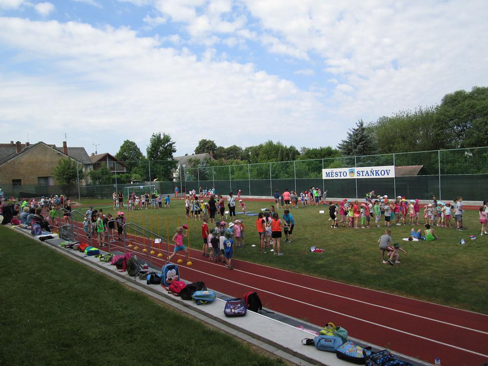 2. května připravily šesté třídy pro žáky 1. stupně a MŠ dětský den. Na hřišti pod školou bylo celkem 20 stanovišť, do kterých jsme se rozdělili po dvojicích a čekali, až přijdou mladší děti. Akce začala v 9 hodin, kdy jsme se na hřišti sešli všichni: páťáci, kteří vodili školkové děti, čtvrťáci, třeťáci, druháci a prvňáci. Všichni ponejvíc chodili v šestičlenných skupinkách. Žáci si např. na stanovišti číslo 10 mohli vyzkoušet skok do písku nebo si mohli zkusit chození na chůdách, zapamatovat si předměty, střílet na fotbalovou branku atd… Celý den jsme si moc užili, i když bylo horko. Všichni prošli skoro všechna připravená stanoviště a na závěr dostali sladkou odměnu.