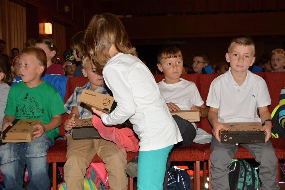 Nejprve všechny potěšily písničky pěveckého sboru pod vedením paní učitelky Augustinové, pak přítomné pozdravili starosta města Alexandr Horák, předseda školské rady Zdeněk Strousek a bývalý ředitel školy a místostarosta Jaroslav Šobr. Potom už nasatal čas, aby ředitelka Jitka Suchá pozvala na pódium prvnáčky vedené třídními učitelkami Hanou Janskou a Danielou Zámostnou. Malí školáci měli za úkol představit se všem přítomným a říci své jméno do mikrofonu. Všichni to zvládli výborně a jako odměnu dostali balíček s milými dárky. Nakonec si ještě pyšní rodiče své prvňáčky vyfotili a školní rok mohl konečně oficiálně začít. :)