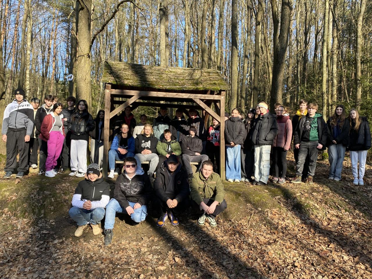 Při hodině tělocviku jsme místo cvičení v tělocvičně či bruslení využili hezkého počasí a šli jsme na procházku do lesa.