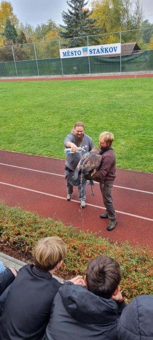 V pondělí 13. října se žáci 8. tříd shromáždili na hřišti pod školou, aby zhlédli ukázku dravců a dozvěděli se zajímavé informace z jejich života.