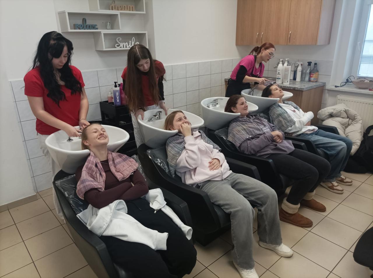 Ve třídách byly připraveny krátké ukázky různých oborů, mohli jsme konzultovat se žáky. Kdo chtěl, mohl jít ještě do budovy kadeřnictví. Zde jsme se dozvěděli o různých pomůckách, které se používají při péči o vlasy. Některým z nás v kadeřnictví vyšetřili vlasovou pokožku nebo učesali copánky nebo různé účesy.
